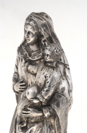 Cette statuette de Vierge à l'Enfant, la plus ancienne connue à ce jour aux poinçons de Rennes, est à rapprocher d'une série d'oeuvres similaires réalisées en haute comme en basse Bretagne entre le début du XVIIe et la fin du XVIIIe siècle. Il est probable que la mode de ces statues de Vierge en métal précieux vienne des couvents.
