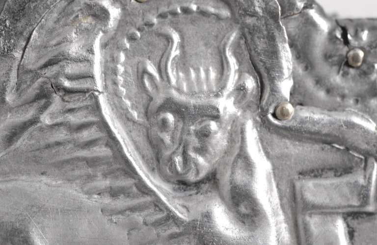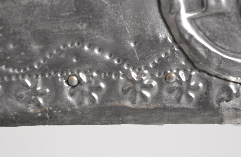 - cuivre, argenté, poinçonné motif en creux, poinçonné motif en relief, estampage