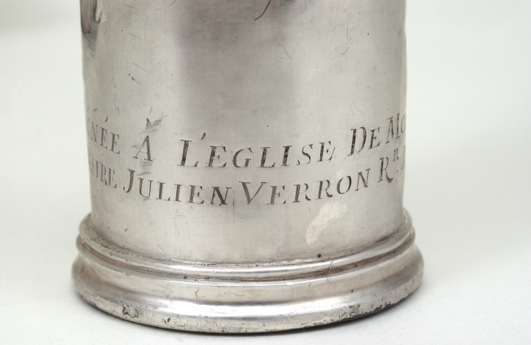 Croix de procession réalisée en 1786 par l'orfèvre rennais Gilonne Paysan, veuve de Jean Loison et offerte en 1788 à la paroisse de Moutiers par son recteur, Julien Verron.