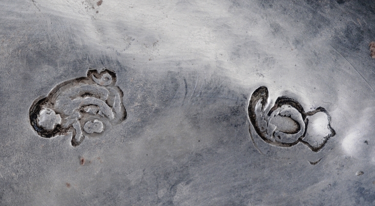 Poinçons (au revers de la statue, à mi hauteur et sur l'arrière de la base) : communauté de Rennes, 1786, singe et chiffre 86 ; charge de Rennes : 9 couronné ; décharge de Rennes : un pot à eau ; inscription au revers de la base : EX DONO JOANNIS JOSEPHI MARCHAND R (ECTO) RIS 1787.