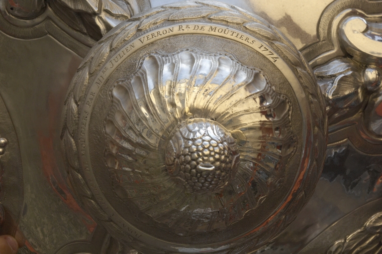 Lampe de sanctuaire réalisée par l'orfèvre rennais François-Gaspard-Jean Roysard et offerte en 1774 à l'église de Moutiers par le recteur Julien Verron.