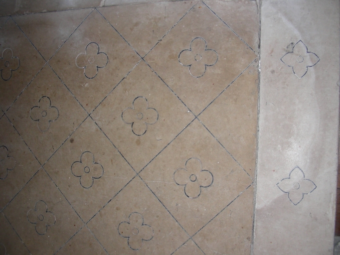 - calcaire, taillé, décor en demi relief, tourné, peint
