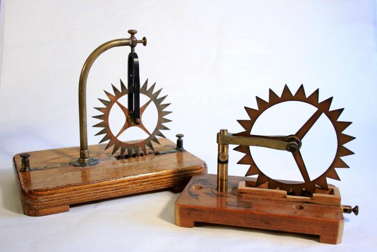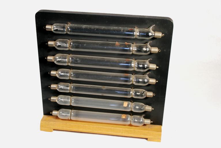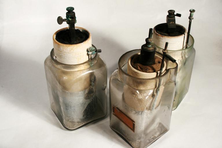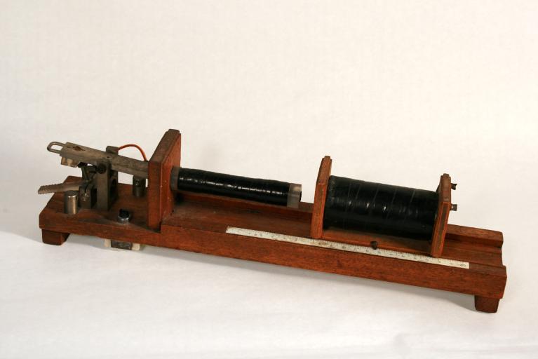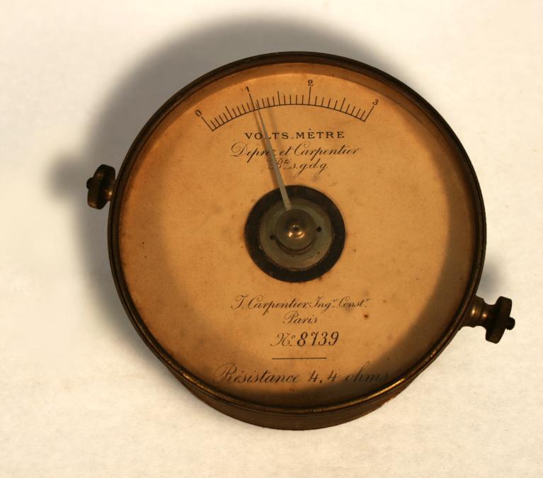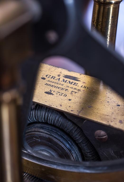 Un accumulateur au plomb Planté, divers ampèremètres (signés Sexer, A.J.C., A.O.I.P., Chauvin & Arnoux, Radiguet & Massiot, Ateliers Da et Dutilh, Morlot-Maury, Ateliers Pekly, Service standart), un appareil à chariot Dubois-Raymond, un appareil de Chassagny, deux appareils de résistances à cinq bobines (dont un signé Radiguet & Massiot et un signé Morlot-Maury), un appareil des courants parallèles, une batterie de piles de Leclanché, une bobine d’inductance variable (signée Suter), des bobines de Ruhmkorff (dont une signée Morlot-Maury), une bobine double de Faraday, une boîte à pont de Wheatstone (signée J. Carpentier), une boîte de condensateurs étalonnés (signée le matériel d’enseignement), une boîte de résistance (signée Breguet), deux boussoles-galvanomètres différentiels, un commutateur bipolaire pour deux circuits, un commutateur de Bertin (incomplet), une cuve d’Ampère à deux compartiments parallèles, un disque de Foucault (signé Radiguet & Massiot), deux échelles de vide d’après Cross, un écran platinocyanure de Baryum, un électro-aimant de Chassagnny (signé Radiguet & Massiot), un électro-aimant en U, un élément de Seebeck à une aiguille, un fil de Laplace, divers galvanomètres à cadre mobile (dont trois signés J. Carpentier et un signé A.O.I.P.), un galvanomètre de Nobili avec miroir (signé Deleuil), un galvanomètre de Thomson (signé J. Carpentier), un grand prisme de paraffine, une machine de Gramme (signé Gramme), des manipulateurs système Morse, deux maquettes de la balance de Cotton (toutes signées Matériel de laboratoire Lefebvre), un multiplicateur de Schweigger, un parafoudre à cornes, un pile de Volta, un pile de Grenet au dichromate de potassium, des piles de Leclanché, une pile de Bunsen (incomplète), un pont à fil (signé Deyrolle), des rails de Laplace, des rhéostats, des roues de Barlow, un shunt galvanomètre (signé J. Carpentier), un solénoïde à main, un solénoïde suspendu, un système de fils parallèles de Lecher, une table d’Ampère modifiée, un téléphone Bell, un téléphone Marty (modèle 1910), un transformateur de Tesla modifié (signé Ancel), un tube à vide pour les expériences de Tesla, un tube avec des minéraux phosphorescents, des tubes binaodiques à rayons X, deux tubes de Crookes à croix de Malte, un tube de Crookes avec moulinet, des tubes de Geissler (acquis en 1894), des tubes électroniques et divers voltmètres (signés Chauvin & Arnoux, J. Carpentier, Bazar électricité, Compagnie F.A.C., Morlot-Maury, Ateliers Da et Dutilh, Ateliers Pekly, A.O.I.P.).