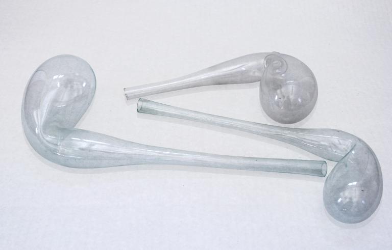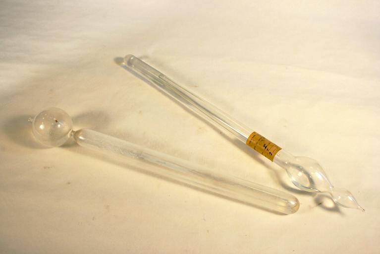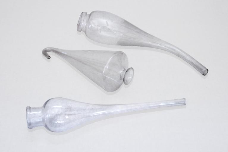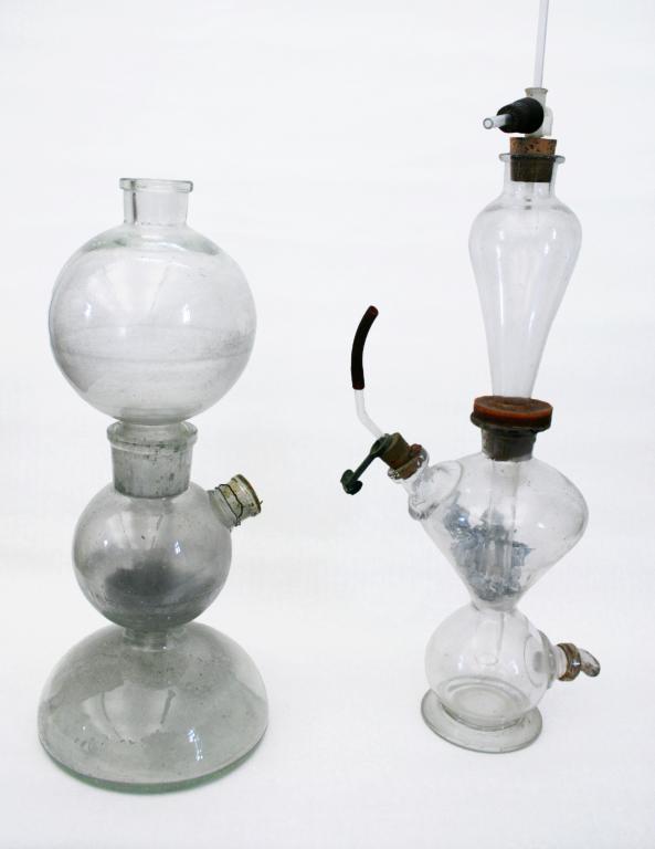 Deux alambics pour la production d’eau distillée en continu, des allonges droites et courbes, un appareil d’analyse élémentaire et tube à boules de Liebig, des appareils intermittents de Kipp, des ballons, un chalumeau sur pied, une conserve à cordeline et à couvercle à bouton, des cornues en grès, des cornues en verre, une cornue tubulée en terre, des creusets ronds à bec en terre réfractaire, un dessicateur de Scheibler à couvercle rodé à bouton, des flacons bouchés émeri, un fourneau à réverbère démontable (signé Poulenc Frères), un fourneau à tubes, une lampe à acétylène, du matériel porcelaine (capsules, nacelles à anneau, main, cuve rectangulaire), des matras d’essayeur, un serpentin en verre pour allonge, un serpentin avec réfrigérant bitubulé, une soufflerie hydraulique, des touries en verre, des vases à graines et un œuf électrique de Berthelot pour la synthèse de l’acétylène.