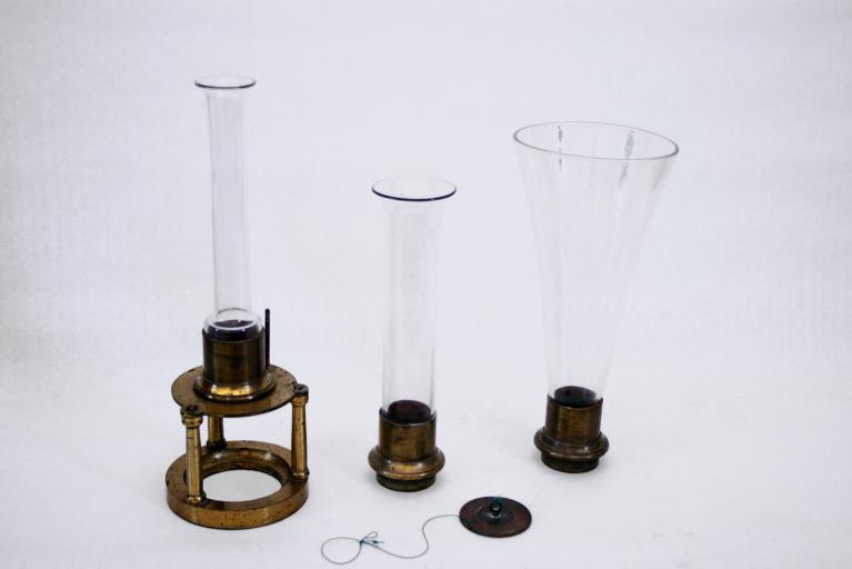 Un appareil de Briet, des ballons pour déterminer la masse et la masse volumique d’un gaz, un baromètre à colonne entière, un baromètre de Fortin, des baromètres enregistreurs (dont un signé J. Richard et un signé Anc. Etc. L. Maxant), un baromètre métallique de Vidie, un baromètre tronqué, des baroscopes, des cloches à vide, une cuvette profonde à mercure, une fontaine de compression, des hémisphères de Magdebourg, une machine pneumatique d’Otto de Guericke, deux manomètres de Bourdon (signés Radiguet & Massiot), un manomètre de Regnault (signé Golaz et Fils), une trompe à eau aspirante et soufflante, un tube de Mariotte et des tubes barométriques.