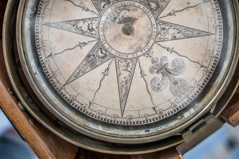 Une aiguille aimantée sur pivot, un compas de marine (dit de l’abbé Nollet signé Le Maire le Fils, 1744) et un magnétomètre de Chassagny (signé Radiguet & Massiot).