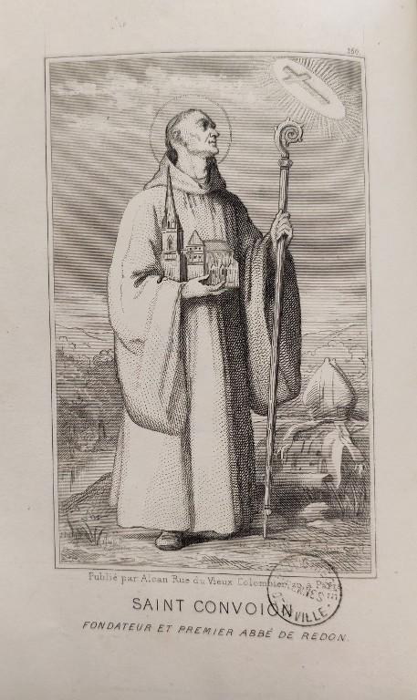 • Gravure éditée par Auguste Alcan et publiée dans Jausions, Paul, Vie de saint Convoïon, fondateur et premier abbé de Redon, par l’auteur de l’histoire de Redon, Redon, Melles Thorel, 1867