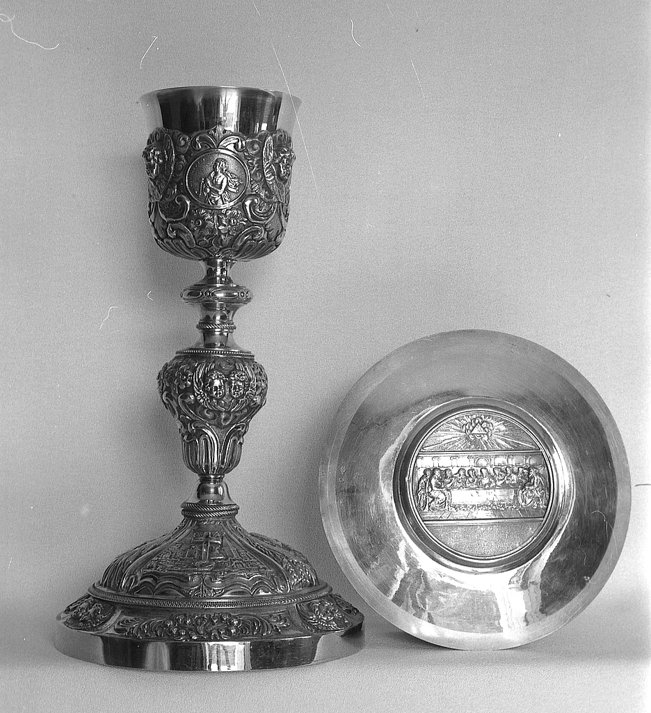 La Cène sur patène ; vertus théologales sur fausse coupe.