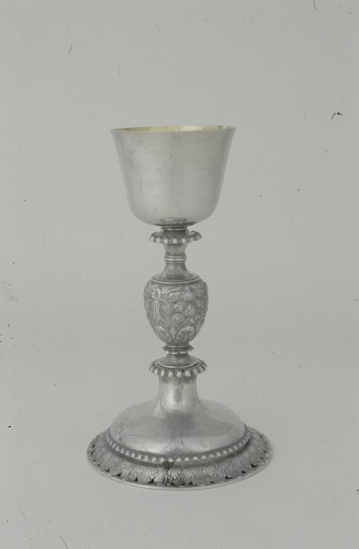 Calice exécuté entre 1680 et 1684 par l'orfèvre vannetais Henri Dufeu associé à une patène portant des traces d'un poinçon parisien.