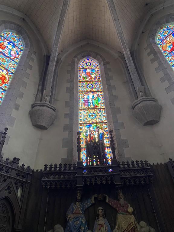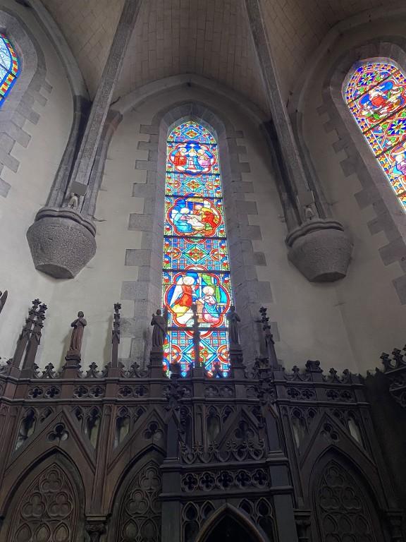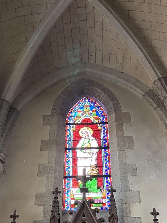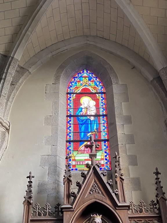 Ensemble de 13 verrières à personnages des baies 0 à 12 : Scènes de la vie et de la Passion du Christ, Saint Louis, Françoise d'Amboise, Vierge à l'Enfant, église paroissiale Notre-Dame (Campénéac)