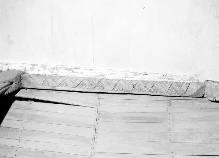 Ensemble de 5 sablières et 2 blochets, de la 1ère moitié du 17e siècle, reprenant les motifs, en plus schématisés, de l'église paroissiale du Croisty datés 1553.