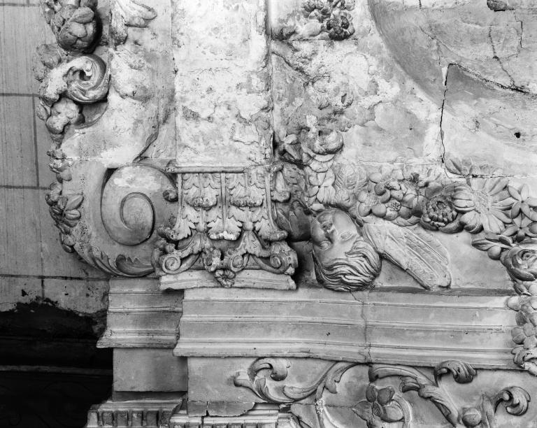 - ornementation, aileron, chapiteau corinthien, chute végétale, guirlande, pot à feu, denticules, angelot, rinceaux