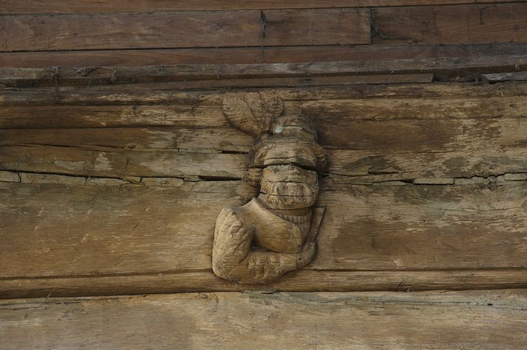 Au sommet des murs, des sablières sont sculptées de décors très variés : armoiries, visages ou bustes d’hommes ou de femmes portant costumes ou chapeaux, anges, masques, animaux, soleil représentant le jour ou lune figurant la nuit, chien courant après un lapin, homme sauvage recouvert d’écailles, homme dégainant une épée ou portant une hache sur l’épaule, musiciens ou scène de la Visitation…