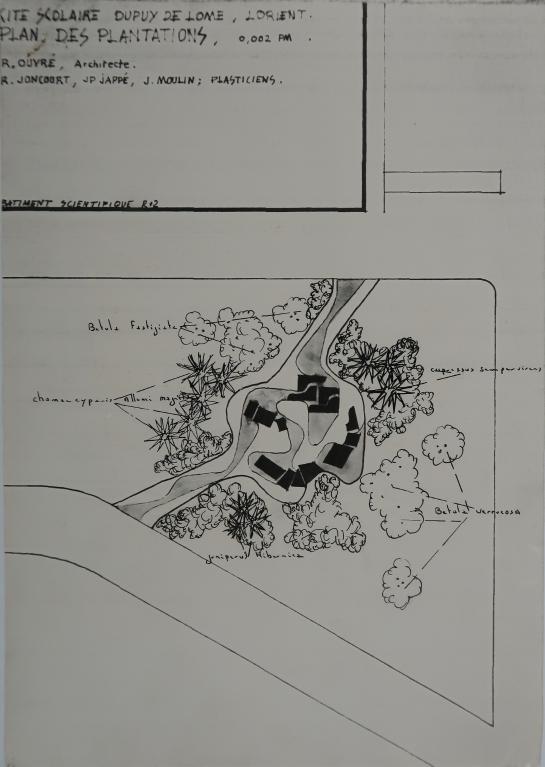 Le lycée Dupuy-de-Lôme est achevé depuis plusieurs années, lorsqu'en 1970 une question est posée au conseil d'administration de l'établissement, le 9 mai 1970, à propos de l'absence de décoration.