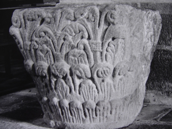 L'ancienne abbatiale possède un ensemble important de chapiteaux en granite. Six chapiteaux déposés et trente-deux chapiteaux adossés, au niveau du choeur. Les quatre chapiteaux des colonnes du rond-point ont été refaits au 19e siècle. On trouve également quatre chapiteaux en calcaire de plus petites dimensions au niveau du transept nord. Quatre des grands chapiteaux déposés devaient appartenir au rond-point du choeur, les deux autres couronnaient probablement les colonnes de la nef primitive.