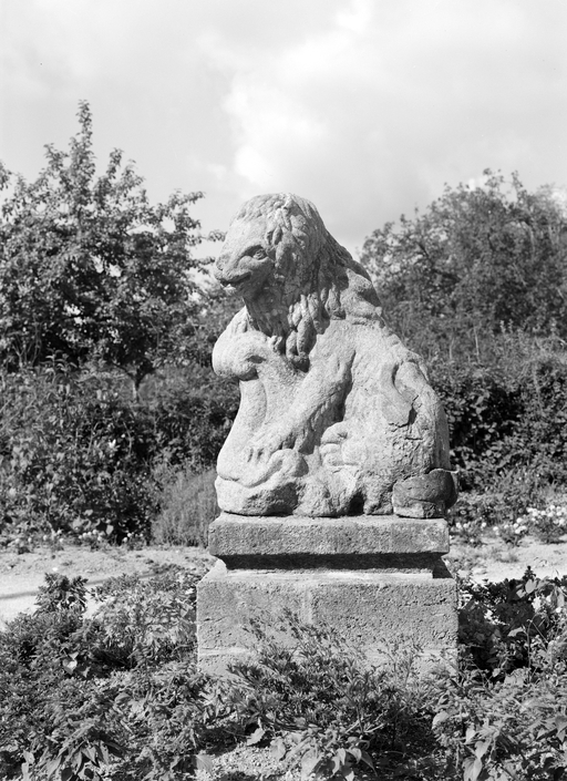 Jardin, lion de pierre, devant la façade sud-ouest (1965)Immatriculation