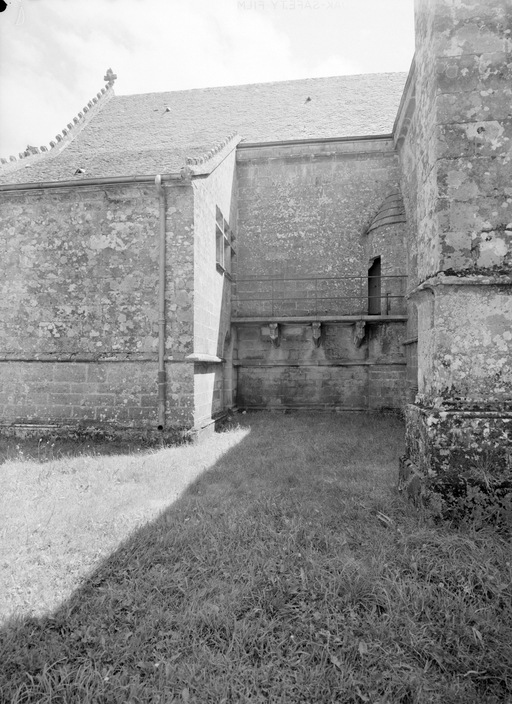 Façade nord, ancienne coursière entre l'oratoire supérieur et la tour d'escalier du bras nord.Immatriculation