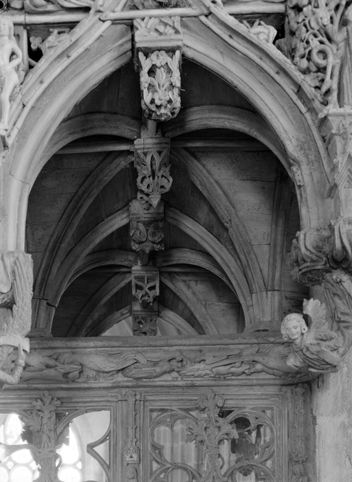 Jubé - Face ouest, voûte de la galerie, première travée sud et sablière de la clôture.Immatriculation