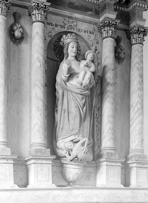 Statue (petite nature, d'applique) : Vierge à l'Enfant dite Notre-Dame de Bon Secours, chapelle Saint-Paterne (Meslan),