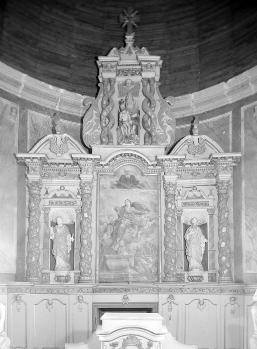 Vue d'ensemble du retable du choeur.Immatriculation