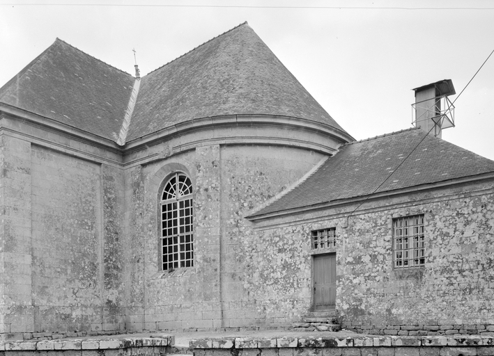 Chevet, vue de l'abside et de la sacristie.Immatriculation
