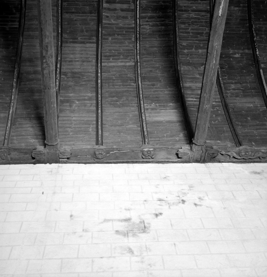 Sablières, détail du mur nord de la nef, entre entraits 2 et 3.Immatriculation