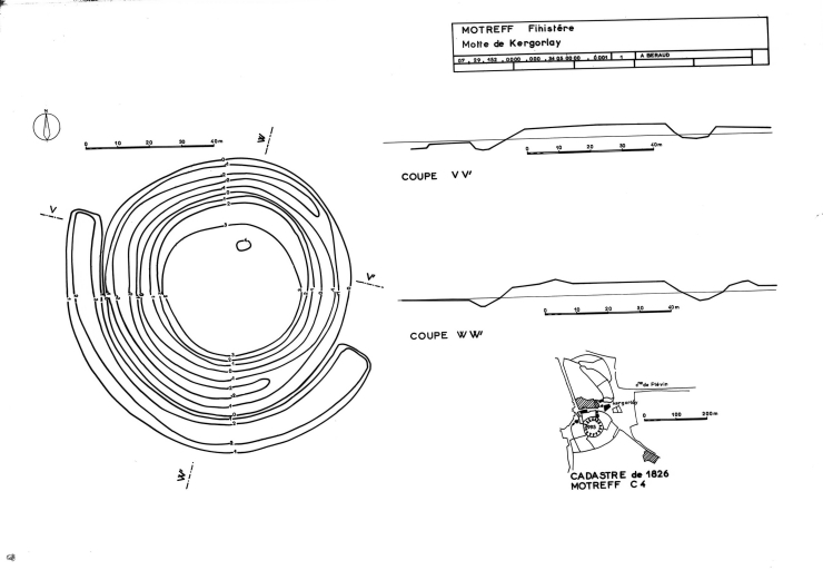 Plan avec courbes de niveau, coupes et extrait du cadastre de 1826Immatriculation