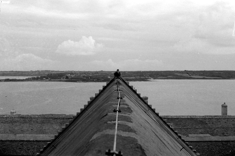 Crozon : vue de l'île des Morts en 1967, couverture du magasin à poudre central (hommage au photographe !)Immatriculation