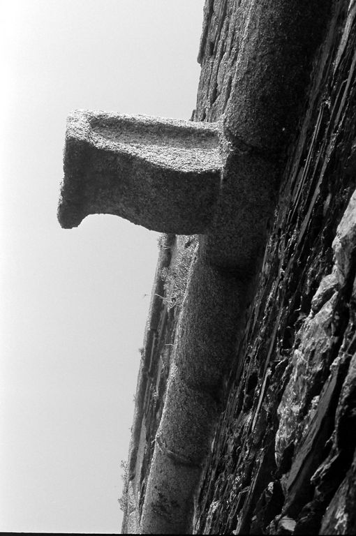 Vue de la batterie de Cornouaille en 1967 : extrémité ouest, escarpe, gargouille et cordon, chaînes harpées en pierres de taille de graniteImmatriculation