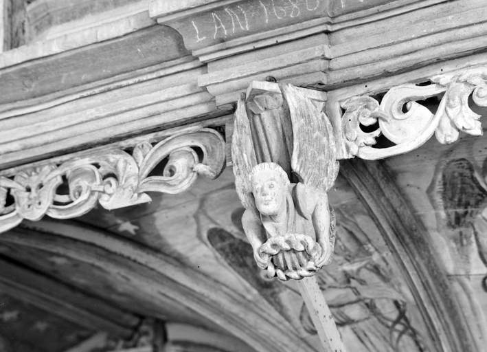 Côté ouest, cul-de-lampe sous le surplomb de la galerie au nordImmatriculation
