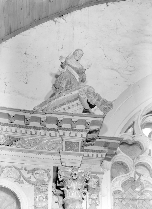 Statue de femme pleureuse au-dessus du retable, travée nord, état en 1967Immatriculation