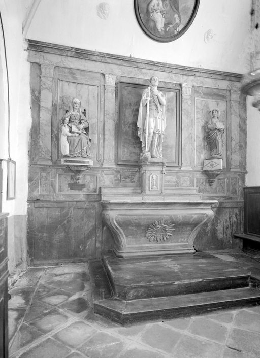 Autels (2), retables (2), gradins d'autel (4), tabernacles (2) (autel tombeau, retable à panneau compartimenté), retable du Rosaire, retable de saint Adrien), église paroissiale Saint-Adrien (Persquen),