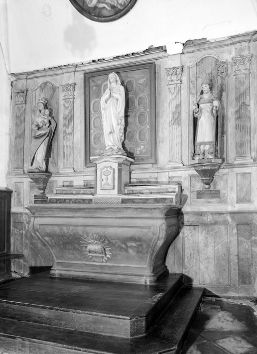 Autels (2), retables (2), gradins d'autel (4), tabernacles (2) (autel tombeau, retable à panneau compartimenté), retable du Rosaire, retable de saint Adrien), église paroissiale Saint-Adrien (Persquen),