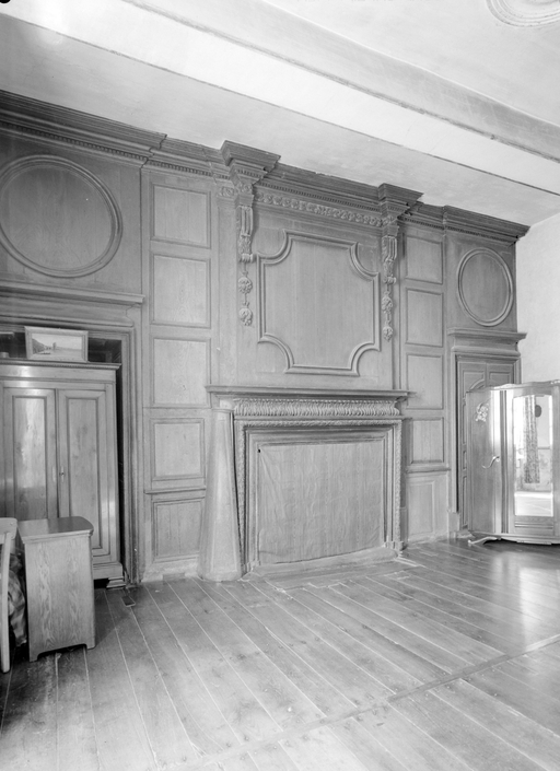 Aile est, pièce 1, cheminée lambrissée, état en 1967Immatriculation