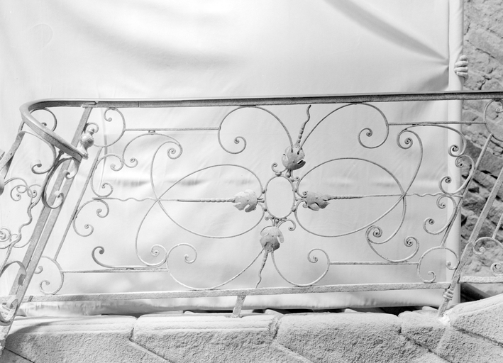 Détail de la rampe de l'escalier en fer forgé, état en 1967Immatriculation