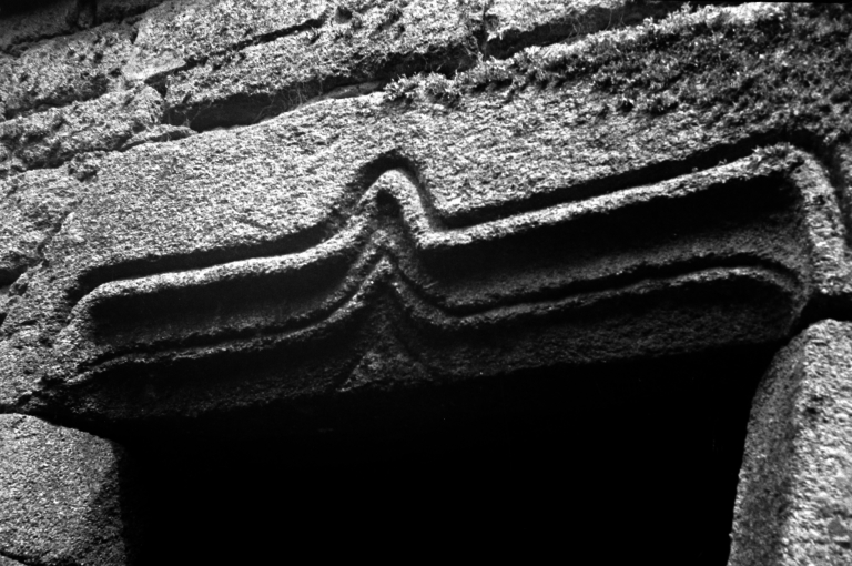 Mane-Tanet, maison (c), façade sud, partie ouest : détail d'un linteau de porteImmatriculation