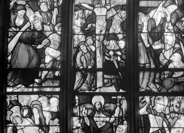 Vitrail de la Passion, dans le bras sud du transept : panneaux inférieursImmatriculation