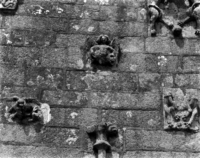 Pignon du porche sud, détail : reliefs surmontant le portailImmatriculation