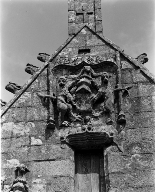 Pignon du porche sud, détail : écu en relief au sommet du pignonImmatriculation