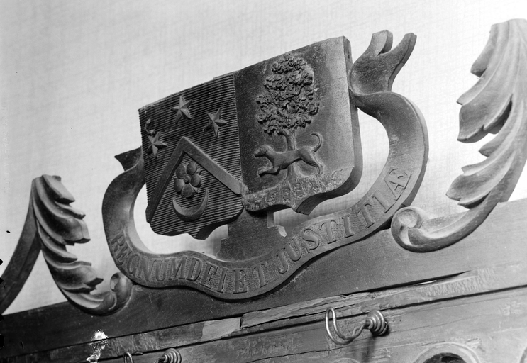 Salon sud est du rez-de-chaussée : blason du porte-manteau du vestibuleImmatriculation