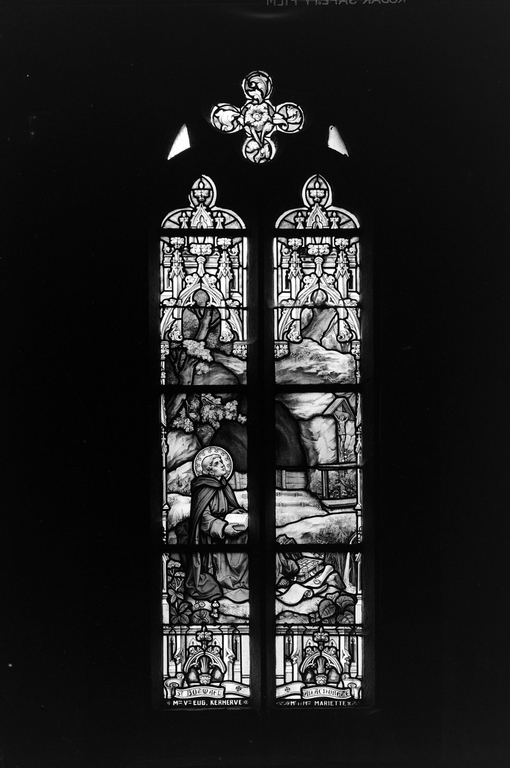 Bas-côté nord, première vitre ouest : saint-Tugdual fonde le monastère du Val-TrégorImmatriculation