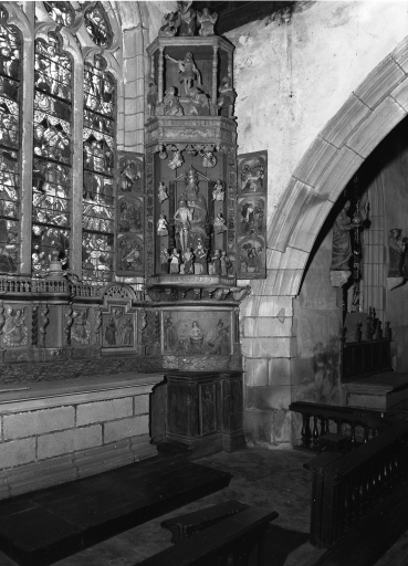 Maître-autel et ses statues : La Vierge ; La Trinité, chapelle du Notre-Dame-du-Crann (Spézet),