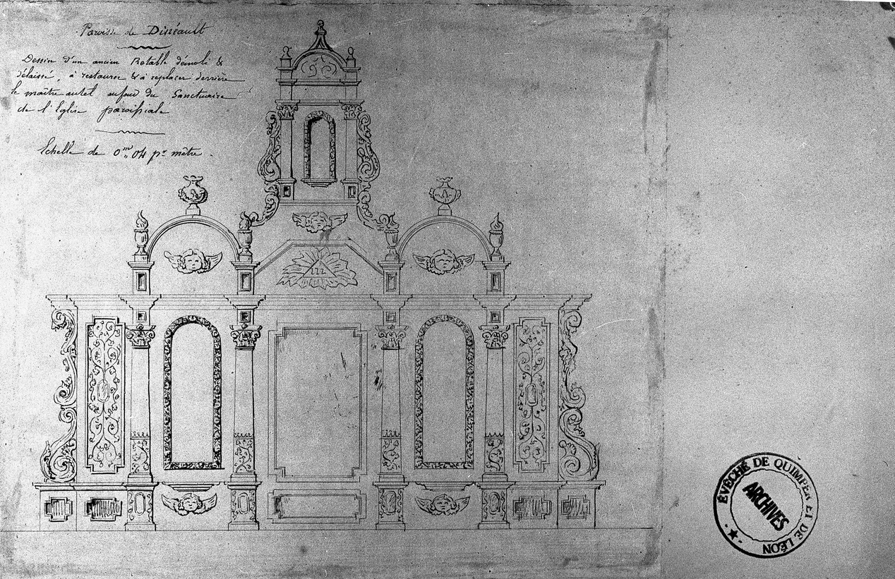 Reproduction - Dessin d'un ancien retable (Archives de l'Evêché de Quimper et du Léon)Immatriculation