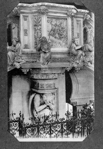 Chaire à prêcher, détail. Carte postale, Fonds des Bouillons.Immatriculation