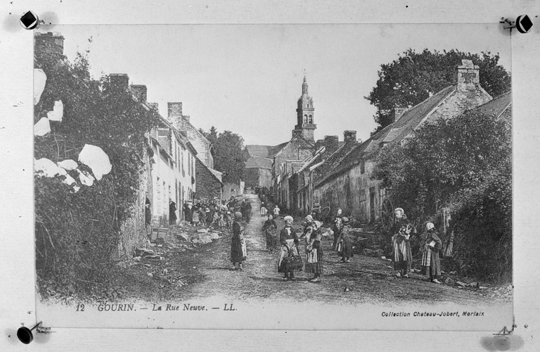 Carte postale ancienne - Vue perspective de la rue Neuve vers l'église (Archives départementales du Morbihan, 61-7)Immatriculation
