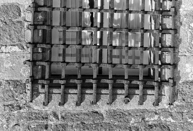 Façade sud : détail fenêtre grillée est du premier niveau (détail partie supérieure)Immatriculation