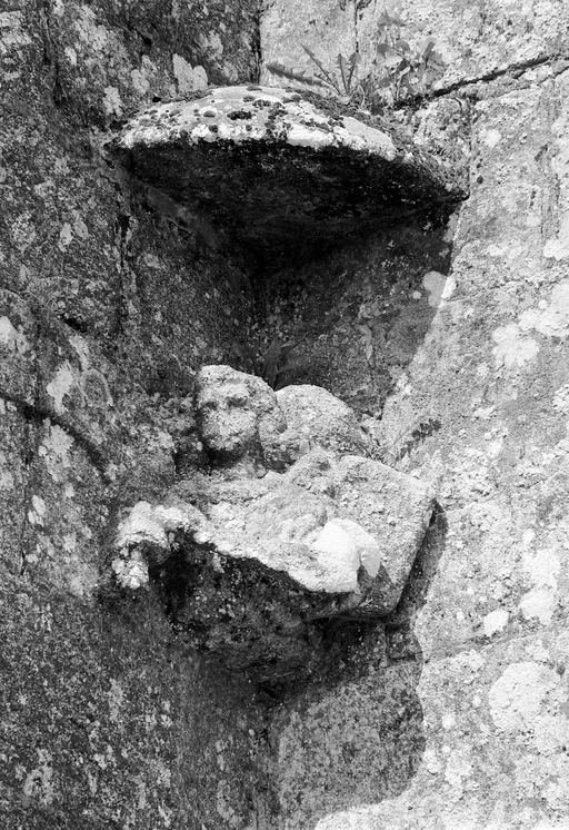Clocher, face sud, angle sud ouest : détail de la figure sculptéeImmatriculation