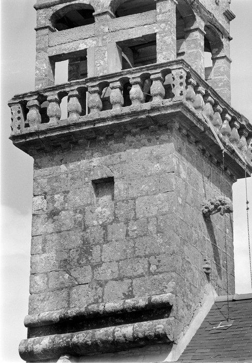 Façade est : détail de la base du clocherImmatriculation