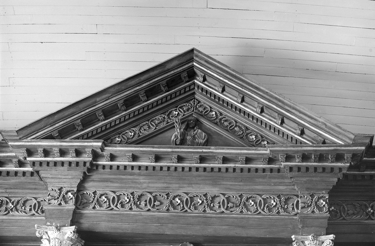 Croisillon nord, mur est : retable, détail du frontonImmatriculation