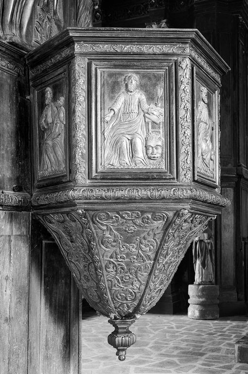 Croisillon du transept, angle nord ouest : chaire, détail de la cuveImmatriculation